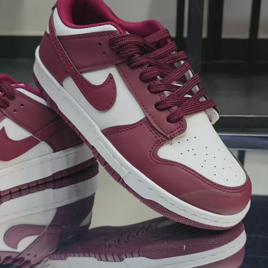 The Nike Dunk Low Retro Burgundy combines classic basketball heritage with a rich, deep burgundy leather upper and crisp contrasting accents. With its low-top silhouette, timeless Swoosh branding, and durable rubber sole, it delivers effortless style and everyday wearability inspired by iconic ’80s hoops DNA.